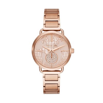 Michael Kors Portia World Map Women S Watch Rose Gold Mk3828 Shopout