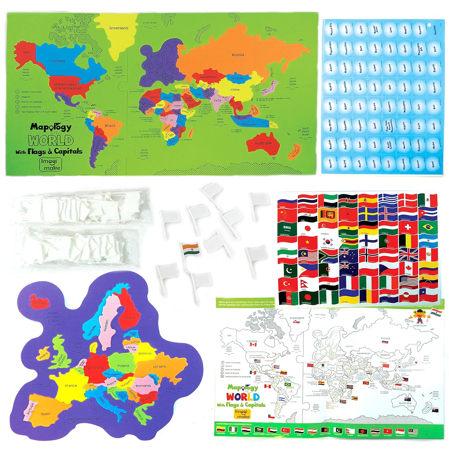 Buy Imagimake Mapology World With Flags Capitals With Country Shaped Pieces Jigsaw Puzzle And Educational Toy For Boys And Girls Above 5 Years Excellent Birthday Gift 6 Pieces Online At