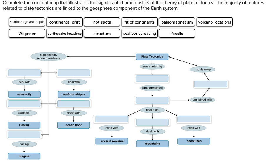 The plates act like a hard and rigid shell compared to Earths mantle. Concept maps begin with a main idea and then branch out to show how that main idea can be broken down into specific topics. The theory of plate tectonics provides an explanation for a diverse array of seemingly unrelated phenomena.